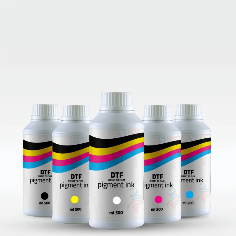 استمتع بتجربة طباعة DTF احترافية مع مجموعة الأحبار الكاملة التي تشمل الألوان الأساسية (سماوي، أرجواني، أصفر، أسود) بالإضافة إلى الحبر الأبيض عالي التغطية. تمنحك هذه المجموعة ألوانًا نابضة بالحياة، دقة عالية، وثباتًا طويل الأمد على مختلف أنواع الأقمشة.